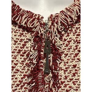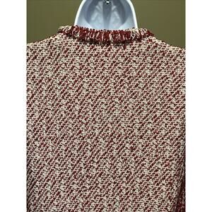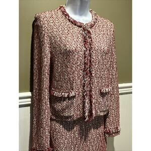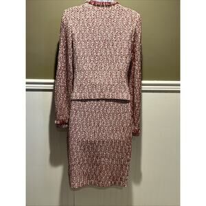 Vtg St John Knit Size 2 Skirt Suit Red & White Tweed Fringed Jacket Full Zip