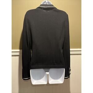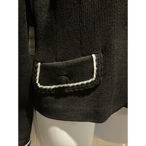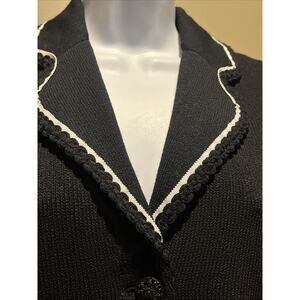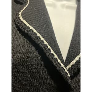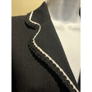 Vtg St John Santana Knit Black Jacket White Piping Crochet Hem Buttons Sz 2
