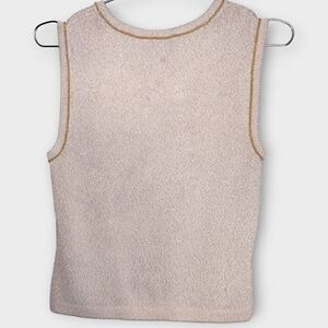 Vtg St. John Sport by Marie Gray sleeveless Sweater Cream Ivory with Gold Luxe threads