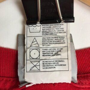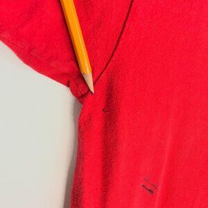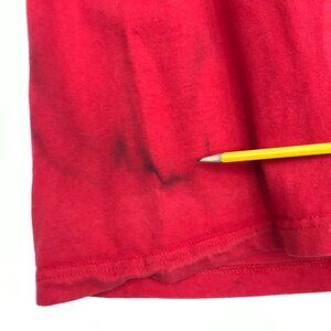 T-shirt has visible wear with discoloration and faint stains on the front and back. Hole in armpit. Please see pictures for an accurate description of the item and condition. Colors vary based on perception and screen display.
