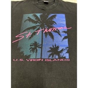 Vtg St. Thomas Virgin Islands Black Palm Tree Beach T-Shirt Single Stitch Size Large. Please see pictures for condition and measurements for proper sizing and fit.