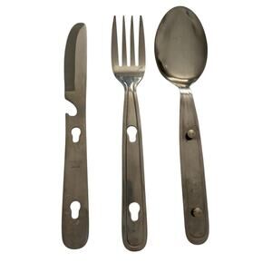 Vtg Stainless Steel Japan Camping Cutlery Utensils Knife Spoon Fork Heavy Duty