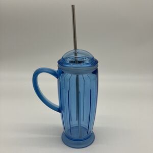Vtg Starbucks Barista Acrylic Clear Blue Rocket Tumbler Cup 2001 Stainless Steel Straw