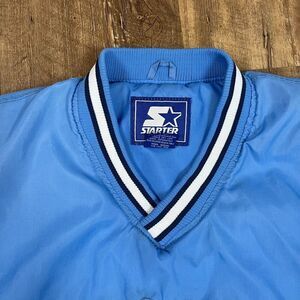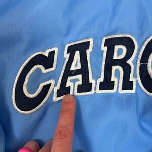 Vtg Starter Pullover North Carolina Tarheels Windbreaker Embroidered Men's L. **Some pulled stitching on embroidery as shown in photos as well as some stains on pocket area and sleeve all in photos. Please refer to all photos for condition and sizing.