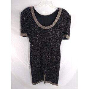 Vtg. Stenay MidCentury Style Silk Shell Beaded Formal Cocktail Midi Dress Sz 8
