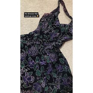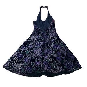 Vtg Steppin’ Out Sz Small Black Purple Green Halter Open Back Mini Dress Velvet