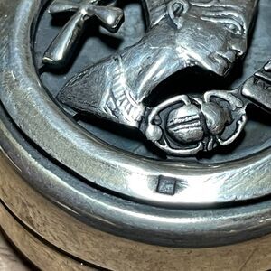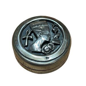 Vtg Sterling Silver Egyptian Pill Box Nefertiti Beetle Ankh Bird Snake Cutout