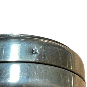 Stamped on outside on rim of top and on side of top. Also stamped inside on bottom.