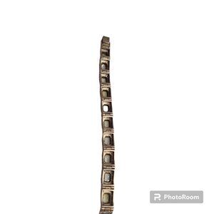 This vintage sterling silver bracelet features gorgeous mother of pearl and marcasite panels. The intricate design and high-quality materials make it a stunning addition to any jewelry collection. At 6 1/2 inches long and weighing 30.87 grams, it is the perfect size for everyday wear or special occasions. The bracelet has been well-maintained and is in excellent condition. Add this beautiful piece to your jewelry box today!