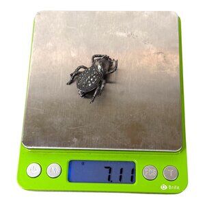 This unique sterling silver beetle brooch combines vintage charm with intricate craftsmanship. Its red crystal eyes add a striking touch, making it a standout accessory. Crafted with meticulous attention to detail, this brooch is a must-have for those who appreciate distinctive jewelry pieces that tell a story and capture the imagination.
