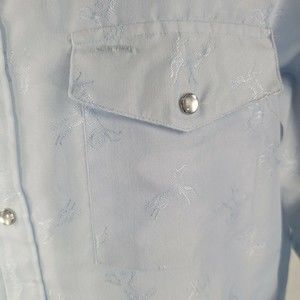 VTG Stetson Saddletail Embroidered Horse Stallion Bronco Pearl Snap Blue L USA. Shirt is Pre-owned and in Good Condition. Slight wear on cuffs. Please see measurements before purchasing. Armpit to Armpit. 23 Inches Hem to Collar. 33 1/2 Inches Sleeves. 24 Inches
