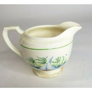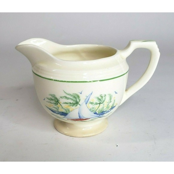 Vintage Steubenville "Sandra" Creamer Made in USA Sailboat Palm Trees Art Deco
