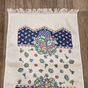 Vtg Stevens Vegetable Print Kitchen Dish Towel Easter Spring USA Fringe Boho