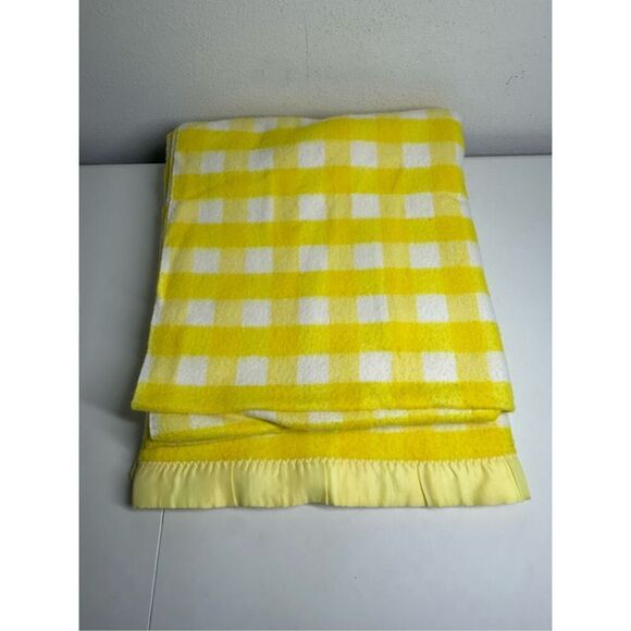 Vtg Stevens Utica Plaid Acrylic Satin Trim Thermal Knit Blanket 76”X90” Twin