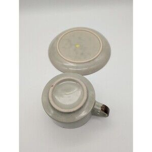 Vtg Stoneware Mug Korea Chili Chowder Soup Cracker Plate Saucer Blue Flower