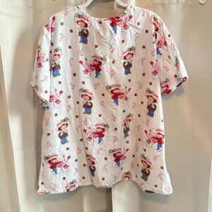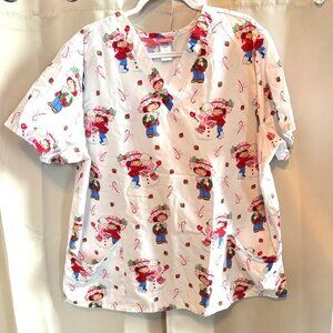 Vtg Strawberry Shortcake Womens Scrub Top 2XL Christmas Work Nurse Playful 19103