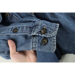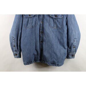 Vtg Streetwear Mens Large Faded Quilted Denim Jean Hooded Shirt Jacket Jac Shirt