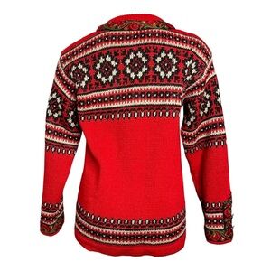 Vintage Stril Sweater Shop Norwegian Wool Cardigan Jacket Red Fair Isle Knit Norway