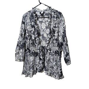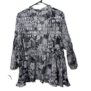 Vtg Studio 1940 Top 22/24 Open Ruffle Sheer Y2K 90s Grunge Whimsigoth Floral Tie