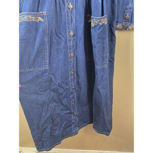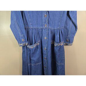 Vtg Studio 25 Long Sleeve Denim Dress Sz S Handpainted Granny Core Prarie Modest
