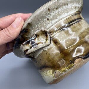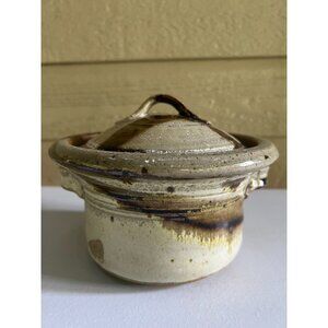 Vtg Studio Art Pottery Lidded 1Qt Casserole w/ Handles Crock Earthy Hygge