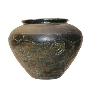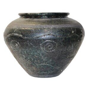Vtg Studio Art Signed Tribal Pottery Black Southwest 5.5" T x 7" round