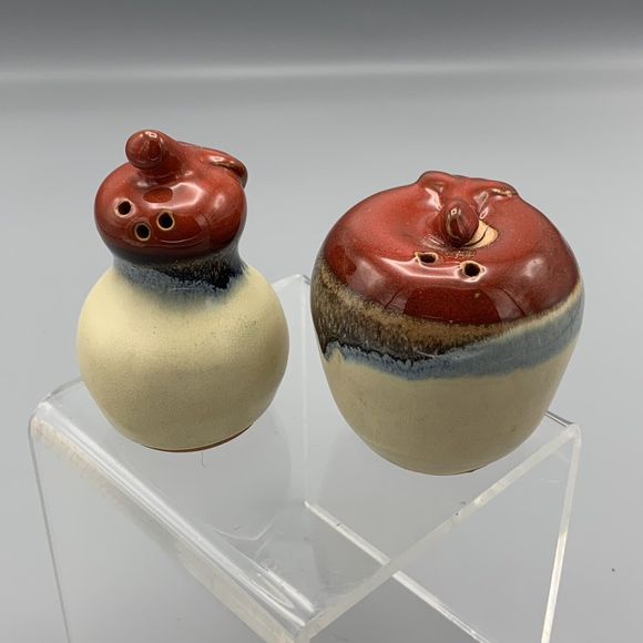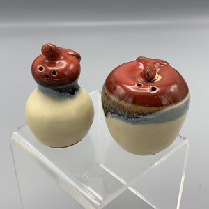 Vintage Studio Pottery Apple and Pear Salt and Pepper Shakers Glazed Red Blue Brown