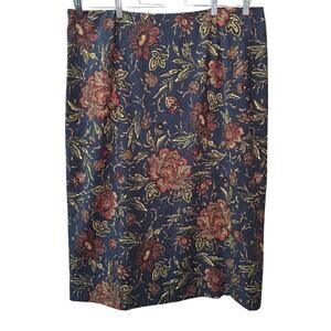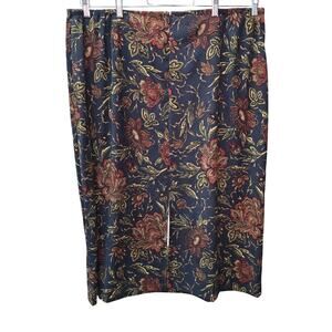 Vtg Studio Works Midi Skirt Womens Plus Size 24W Navy Blue Bohemian Floral Microfiber Elastic Waistband Back Slit