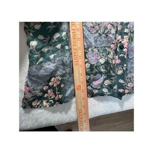 Gorgeous vintage Stunt Collections women’s blouse in 100% silk. Size Large. Features a moody dark floral patchwork print with soft greens, pinks, and blues. Classic button-down silhouette with a relaxed, drapey fit and lightweight luxe feel—perfect for styling tucked or loose. Made in the 90s or early 2000s.