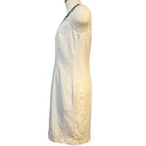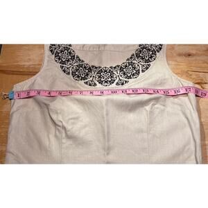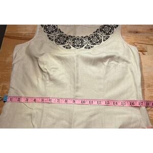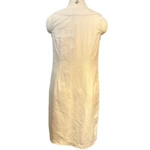 Vtg Style Linen Blend Sheath Dress 212 Collection Size 8 Cream Embroidered Neck
