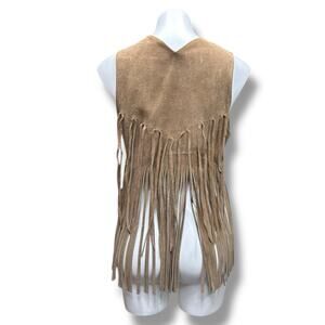 Vintage Suede Fringe Vest Size Small/Medium Leather Tan Brown Boho Hippie Festival 60s 70s