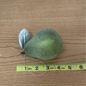 Vtg Sugared Pears w Stems and Silver Leaf Fall Decor Christmas Ornaments Set 4