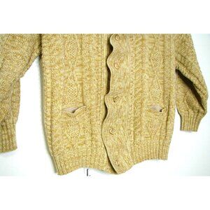 Vtg Sunbird LL Yellow Cable Knit Cardigan Sweater Size L Chest 48" Button Front Unisex - see measurements for size variance
