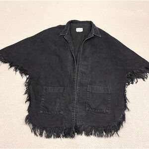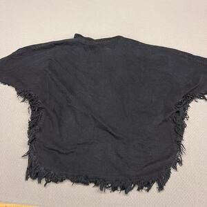 Vtg Sundance Fringe Poncho Jacket Womens Small Black Canvas Western Boho