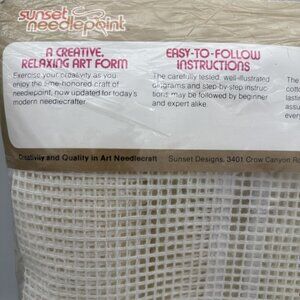 Vintage Sunset Needlepoint kit “Diamond Gros Point Pillow” by Audrey Powell. Sealed 16x16 pillow craft kit in cream and tan geometric design — perfect for collectors or DIY needlepoint lovers.