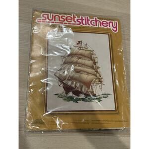 Vtg Sunset Stitchery Kit Before the Wind 1977 Sailing Embroidery SEALED Complete