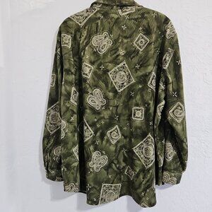 Vtg Susan Graver Shirt Womens 3X Green Paisley full Button Up Long Sleeve Blouse office work