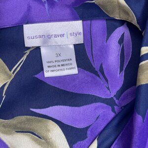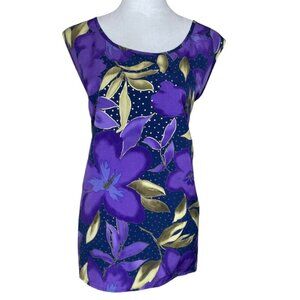 Vtg Susan Graver Style Women's Purple Gold 2pc Tank & Button Down Blouse Plus 3X