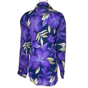 Stylish 2-piece tank and button-down blouse set in a beautiful purple floral pattern, perfect for a casual occasion. Features a collared neckline, long sleeves, and a pullover closure for easy wear.