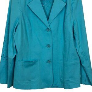 Vtg Susan Graver Women’s Blazer Jacket Sz Medium Embroidered Floral Laser Cut