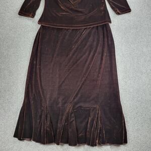 Vtg Susie Couture Velvet Skirt Set Womens L Brown Paisley Cowl Neck Whimsigoth