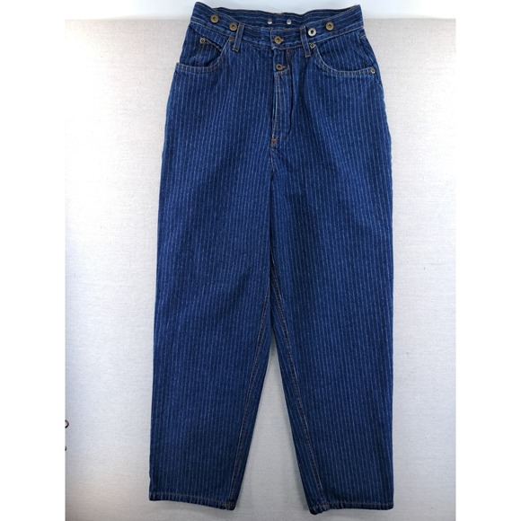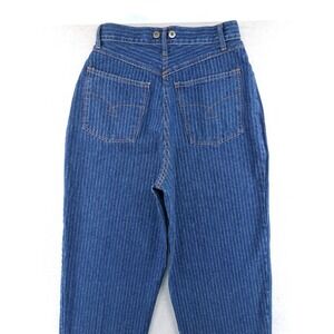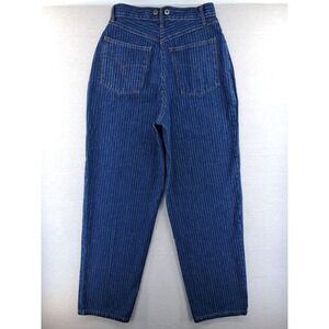 Vtg Suspender Button Jeans Women 9 Fits 4 27.5x29in Blue Pinstripe Retro Baggy