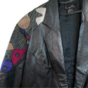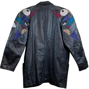 Vtg Suzelle Genuine Leather Embroidered Embossed Oversized Coat Jacket Size M