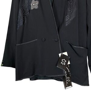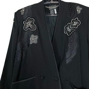 Vtg Suzelle Wool Leather Beaded Floral Embroidered Evening Jacket Black Size 14