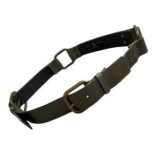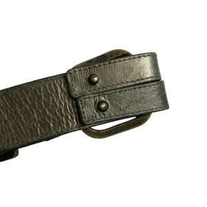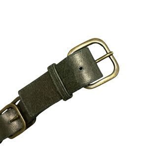 This listing is for a Suzi Roher Women's Green Leather Belt. Approx 1.5in wide. Abel buckles/hardware (Made in Italy). Subtle metallic sheen. 2 adjustment holes. Belt made in Italy.