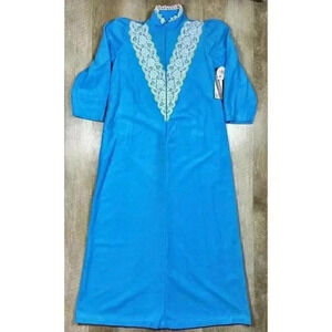 Vtg Suzy Robe Sz Medium House Coat Dress Full Length Zip Acetate Soft Fleece NEW