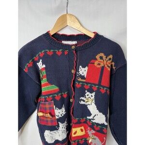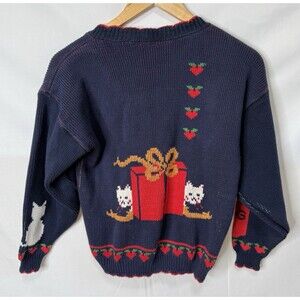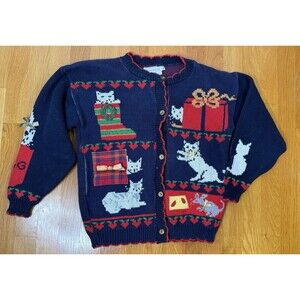 Vtg Sweater Loft Christmas CardiganSweater S Cats Cottage Core Holiday Made USA