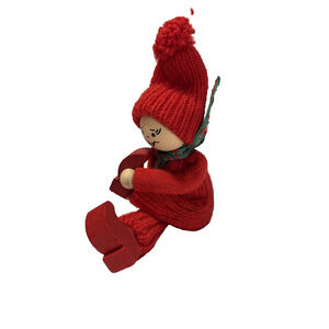 Vtg Swedish Tomte Figurine Collectible Handmade Christmas Child Wooden Shoes