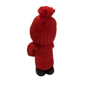 Handmade wooden figurine with red knit suits and hats