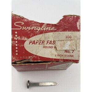 Vtg Swingline Paper Fasteners 100 Count No. 7 Size Round Head 2” Shank MCM